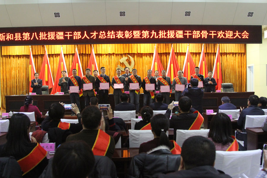 12月31日,第八批援疆干部人才总结表彰暨第九批援疆干部骨干欢迎大会在县委党校召开。县四套班子在家领导、第八批援疆干部人才、第九批援疆干部骨干、各乡镇、县直各单位主要领导、受援单位干部代表等三百余人参加会议。会上,县委常委、组织部长葛雷宣读了援疆干部人才表彰决定,与会领导为29名受表彰的优秀援疆干部人才颁发荣誉证书。