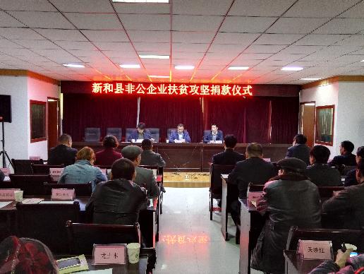 为深入贯彻县委、政府关于扶贫攻坚的系列部署要求,助力新和县农村扶贫攻坚工作,帮扶困难群众,支持福利慈善事业,新和县工商联(非公党工委)、园区管委会组织新和县非公企业开展了“向贫困人员献爱心”为主题的“扶贫攻坚捐款”活动。
