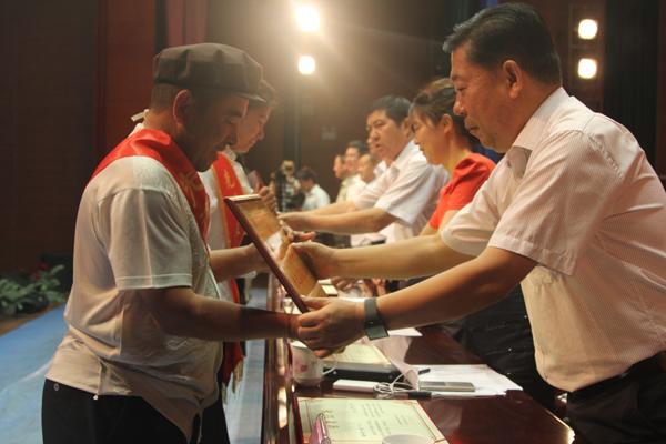 图为,县四套班子领导为受表彰的先进基层党组织颁奖。