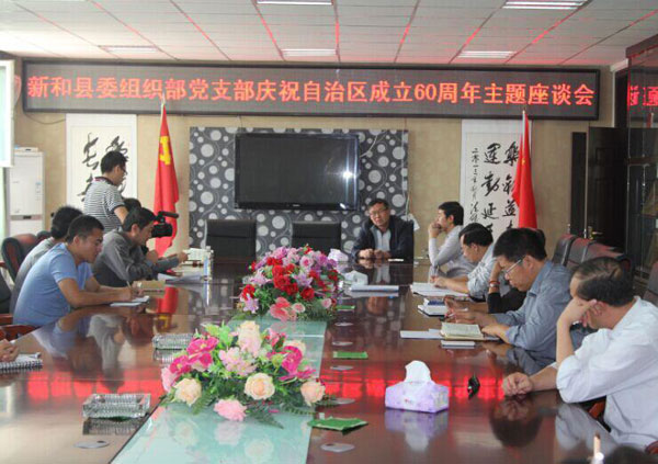 为庆祝自治区成立60周年,9月18日上午,县委组织部党支部以“回忆过去、畅谈变化、感恩祖国”为主题,以“座谈会”的形式回忆过去生活的不易,讲述近年来身边发生的翻天覆地变化,畅谈“没有党和国家的好政策,就不可能有今天的幸福生活,各族人民要懂得感恩”。